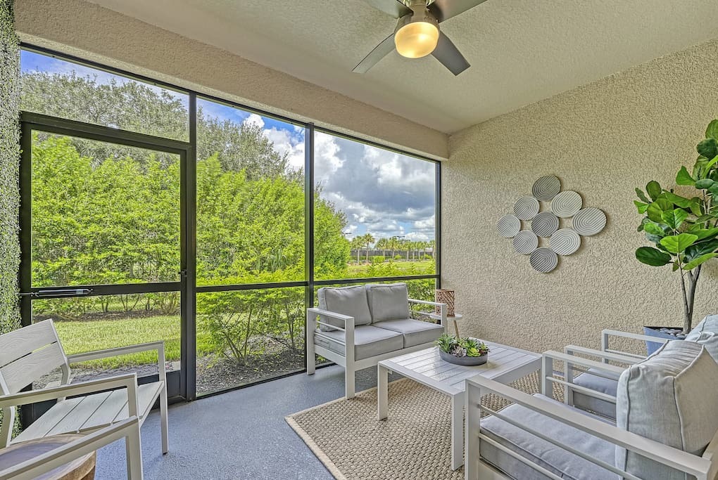 This property also offers a screened in lanai porch overlooking a quiet pond in the back area of the unit. Sit and watch the tropical pond birds while you sip your morning coffee.
