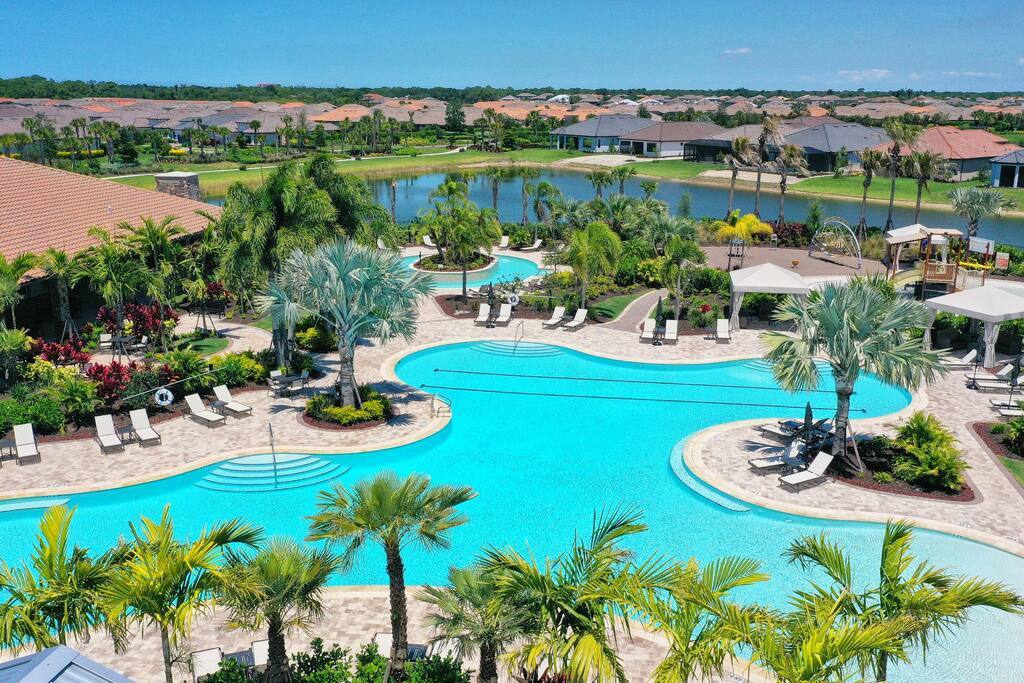 Professionally styled and decorated to enjoy plush, lush living at its best! This Resort like property and home have it all! Amenities to fill your bucket lists and room to spare! Live amongst the resort style living club! Take an easy stroll to the nearby pool, laze away by the Bahama bar and the spa tub. On days you feel active, visit the fitness center, play tennis, bocce and pickle ball or walk the numerous paths of the community. Welcome to Sarasota Resort-Full Living!