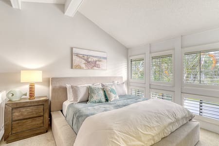 Lounge at this amazing space with all the comforts you need, admiring the lush tropical landscape on one side and the peaceful courtyard water fountain on the other. Open and airy loft bedroom has amazing lush views of Florida palms and endless blue skies. Everyone has the space they need while unwinding in this island haven.