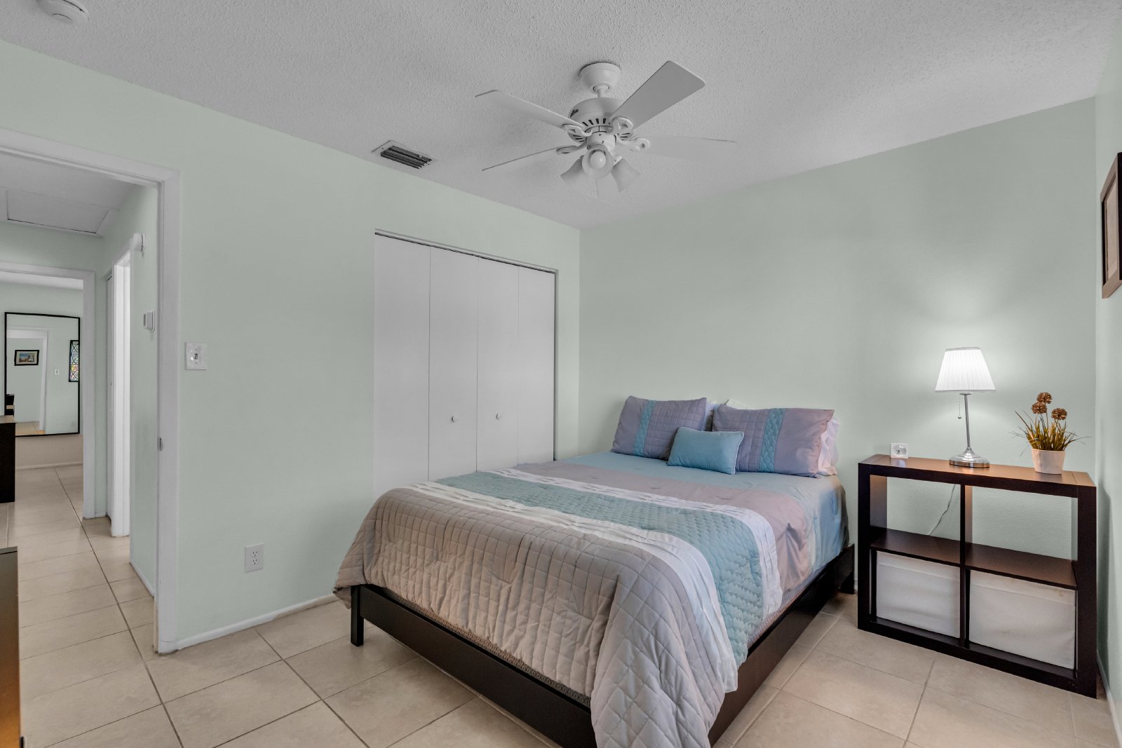 Two bedrooms and one bathroom furnished with queen beds or unfurnished