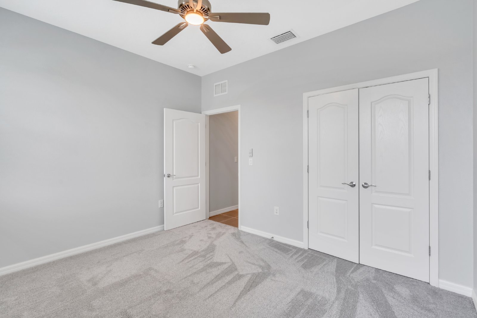 Four spacious bedrooms with ceiling fans and nice, plush carpeting. Large primary bedroom - your own private retreat featuring dual sinks, elegant walk-in shower and spacious walk-in closets. Guest bedrooms offer a nice split plan for maximum privacy among all. Two full bathrooms, conveniently located, featuring high end fixtures with tub/shower combinations. Plenty of windows allowing for natural light.